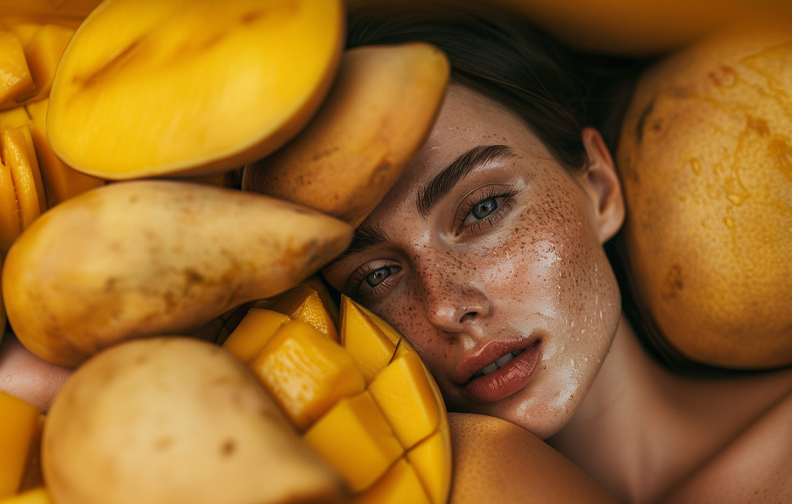 Mangoes are rich in vitamins like vitamin A, C and E, along with potassium and fibre. Vitamin C and A has anti-oxidant properties, which help skin to glow and provide protection against UV rays by neutralizing free radicles. Vitamin C also promotes collagen synthesis, leading to youthful skin. It contains anti-oxidant like beta-carotene, which has anti-aging properties, reducing signs of aging like fine lines and wrinkles. It’s high-water content help to hydrate skin adding to glow. Mangoes do have anti-inflammatory properties too, as it contains magnesium, which help to sooth skin.